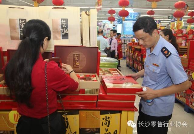 检查组本着“指出问题、建议规范、不予处罚、提升服务”的原则,对门店内的月饼、茶叶、休闲食品、特产、酒类等产品进行随机检查,对发现的问题,当场予以指出,并普及自检方法。