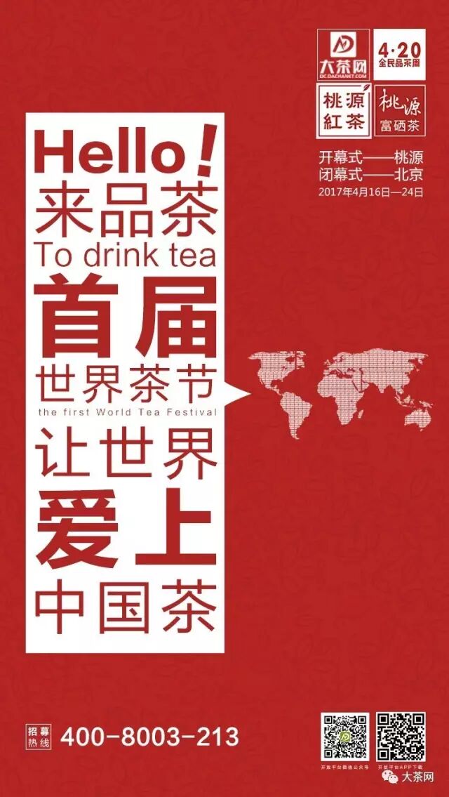 4月16日,“首届世界茶节暨4.20全民品茶周”在湖南桃源开幕。也预示着为期9天,席卷坦桑尼亚、肯尼亚、斯里兰卡、印度、韩国、美国、西班牙、德国、英国、柬埔寨、泰国、香港、澳门等十余个国家与地区,全球200个城市的世界茶人狂欢节正式拉开帷幕。