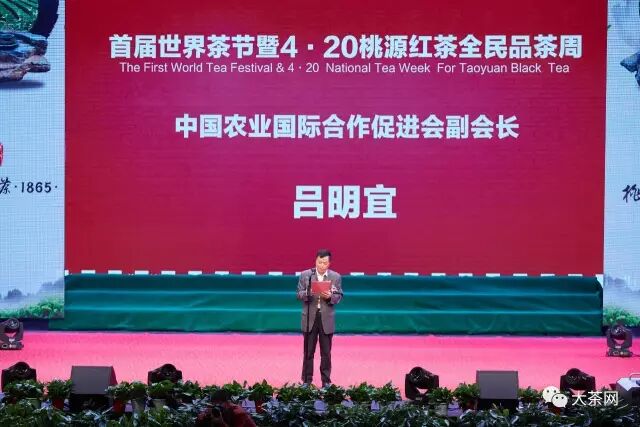 “首届世界茶节暨4·20全民品茶周”开幕式由中国农业合作促进会茶产业委员会、澳大利亚茶业协会、美国茶业协会、加拿大茶业协会、韩国茶业协会、中国电子商务协会农业促进中心、中国电子商务协会新零售研究中心、人民日报海外版、湘西茶文化研究会等单位集体发起,大茶网、桃源县政府主办,中国农业合作促进会茶产业委员会联合主办。