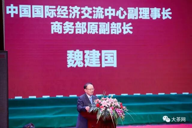 中国国际经济交流中心副理事长、商务部原副部长魏建国在讲话中指出:中国茶历史悠久,但茶文化传承并不理想,中国茶面临西方饮料竞争的局面。随着互联网飞速发展,网上购物人群持续扩大。中国茶叶应该提高认识,从诚信和标准入手,服务市场,让中国茶自信的走向世界。